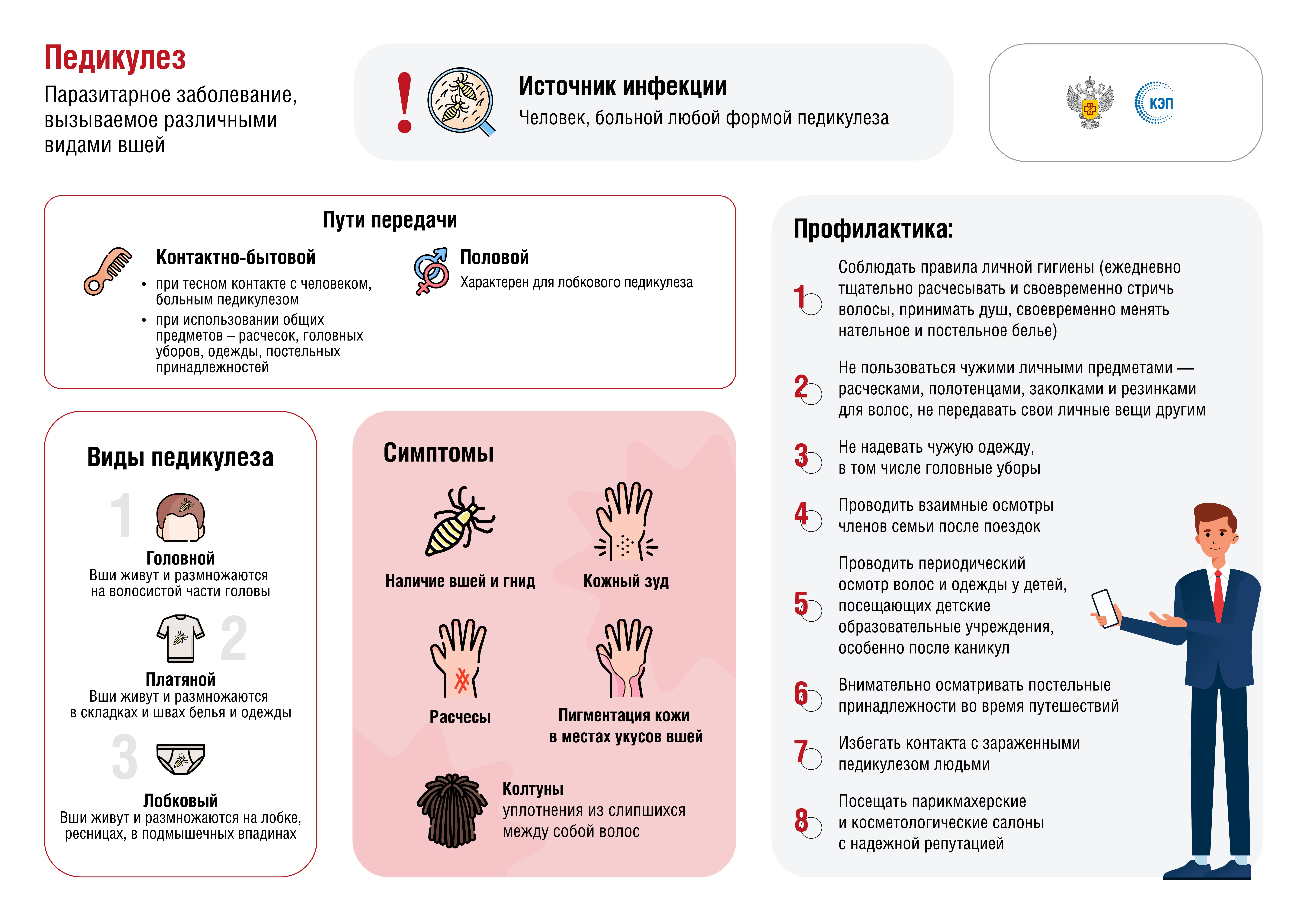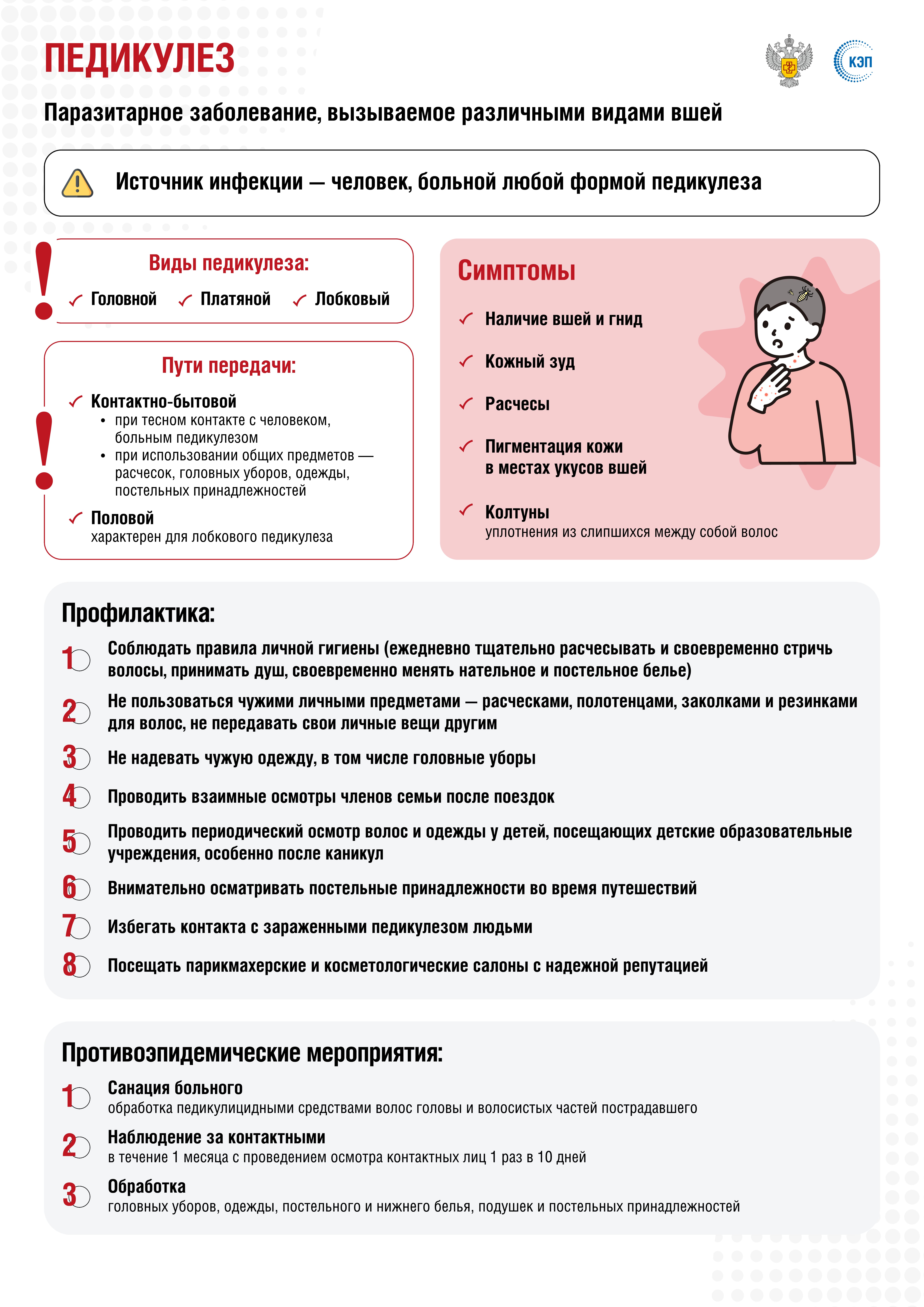 - Информация Федеральной службы по надзору в сфере защиты прав потребителей и благополучия человека от 2 июня 2022 г. «О профилактике педикулеза».